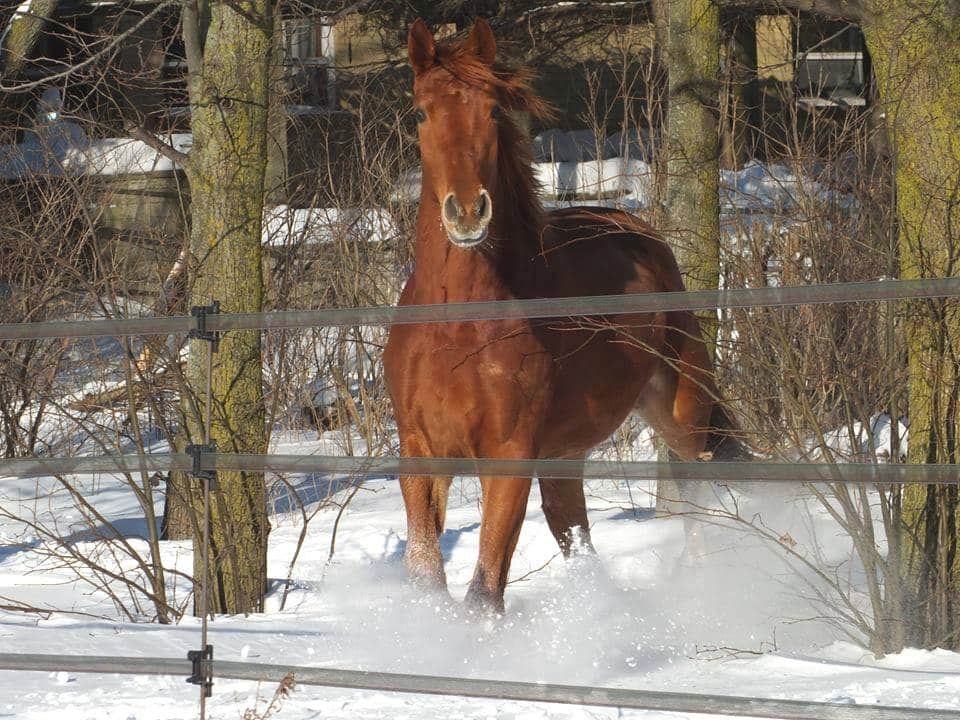 This zap between 4000 and 7000 volts is harmless but associated with the fencing it creates a mental barrier for the horse.